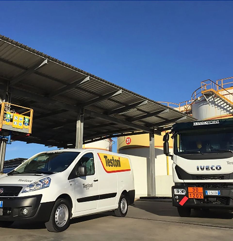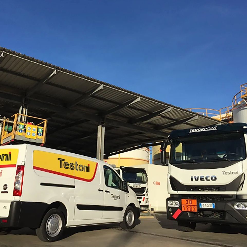 Il parco mezzi di Testoni trasporta in autobotti certificate il carburante sino al domicilio del cliente. Il servizio è valido per le quantità che eccedono i 500 litri.